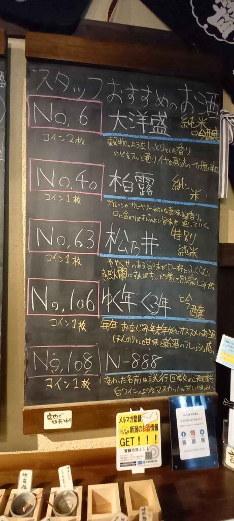 新潟の酒を試飲して見て、気に入ったお酒をお土産に
