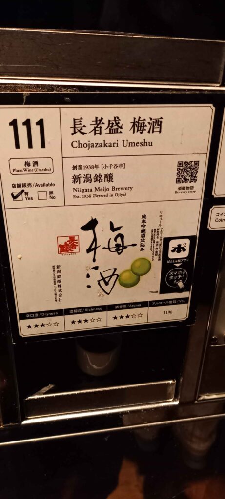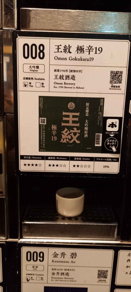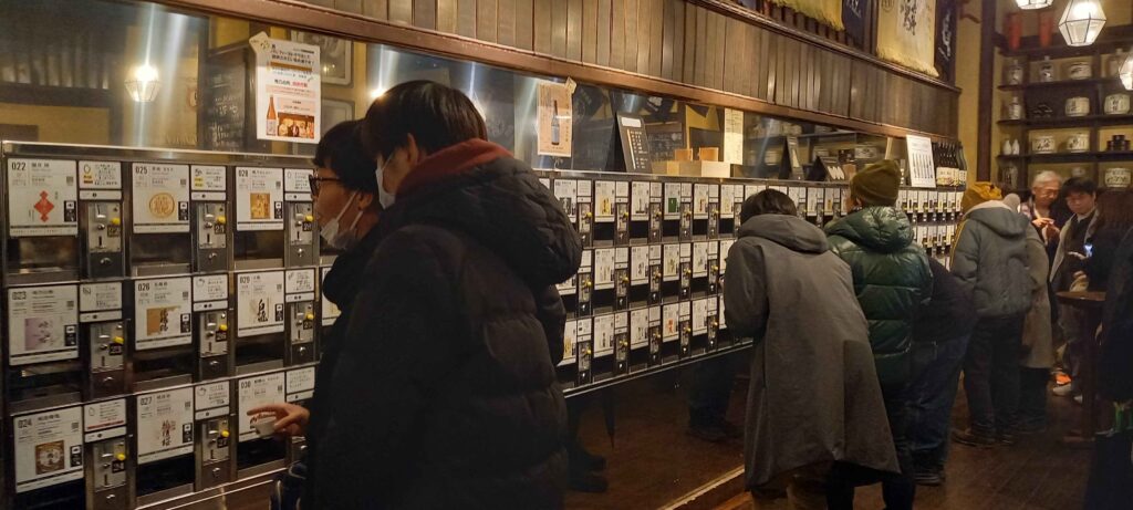 行きコイン1枚(大吟醸は2枚)を入れ、試飲用ボタンを押して
