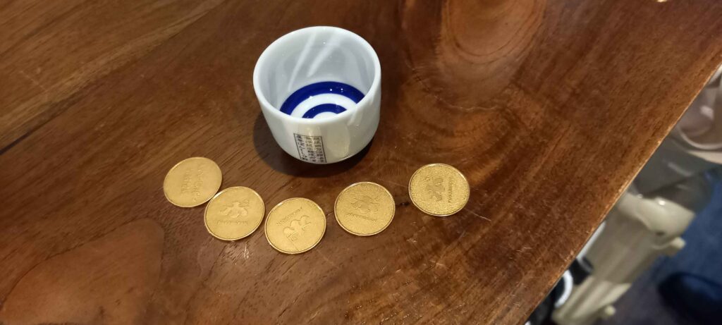 コイン5枚と試飲用お猪口をもらい、興味のあるお酒の前に