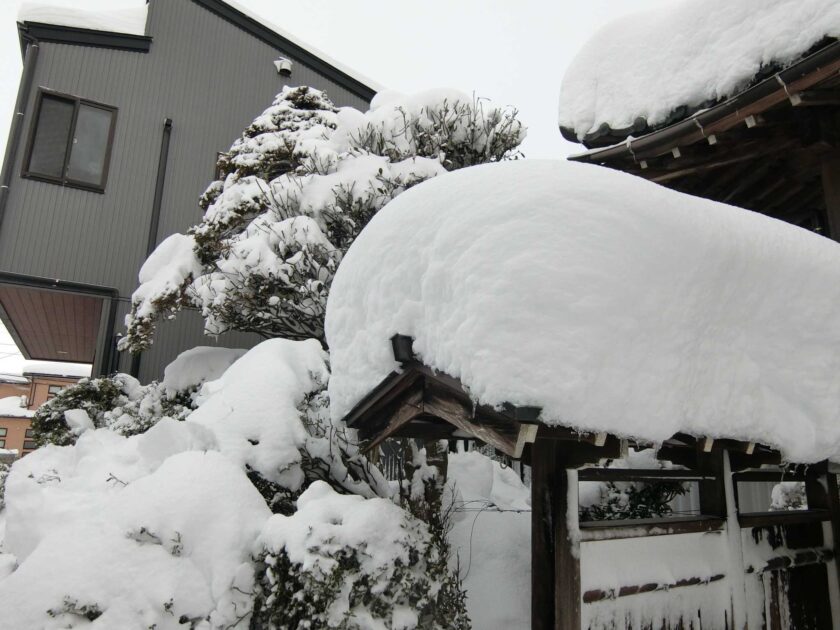 この大雪の予報は昨年カマキリが、2mほどの高さまで登っているのが
