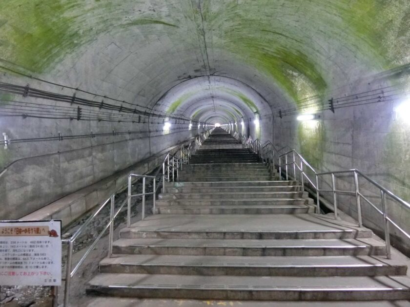 下りホームは、なんと地下70mの新清水トンネルの中にあります。