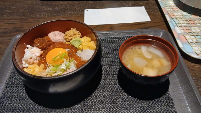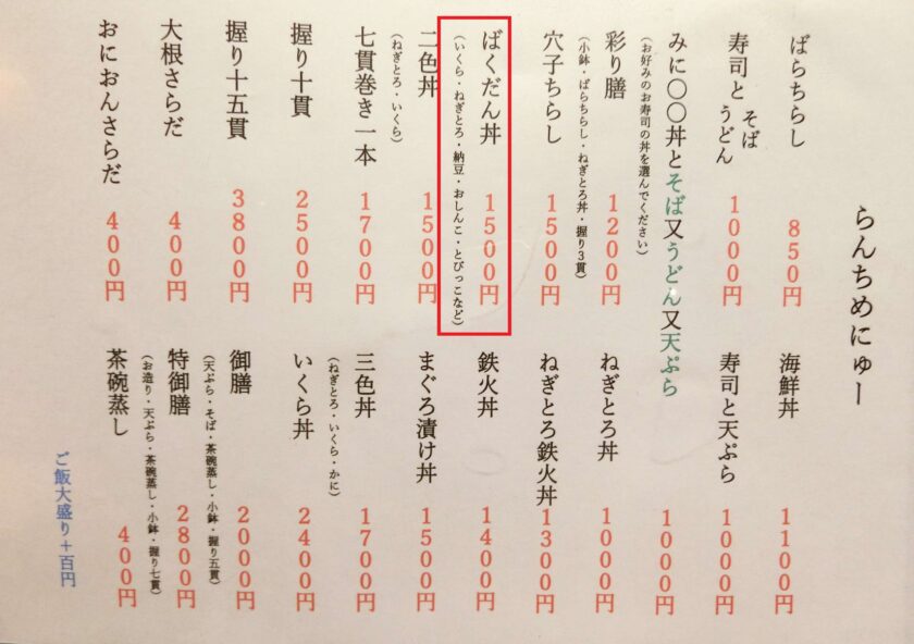 **『ばくだん丼』**を初体験。いくら、ねぎとろ、納豆、おしんこ、