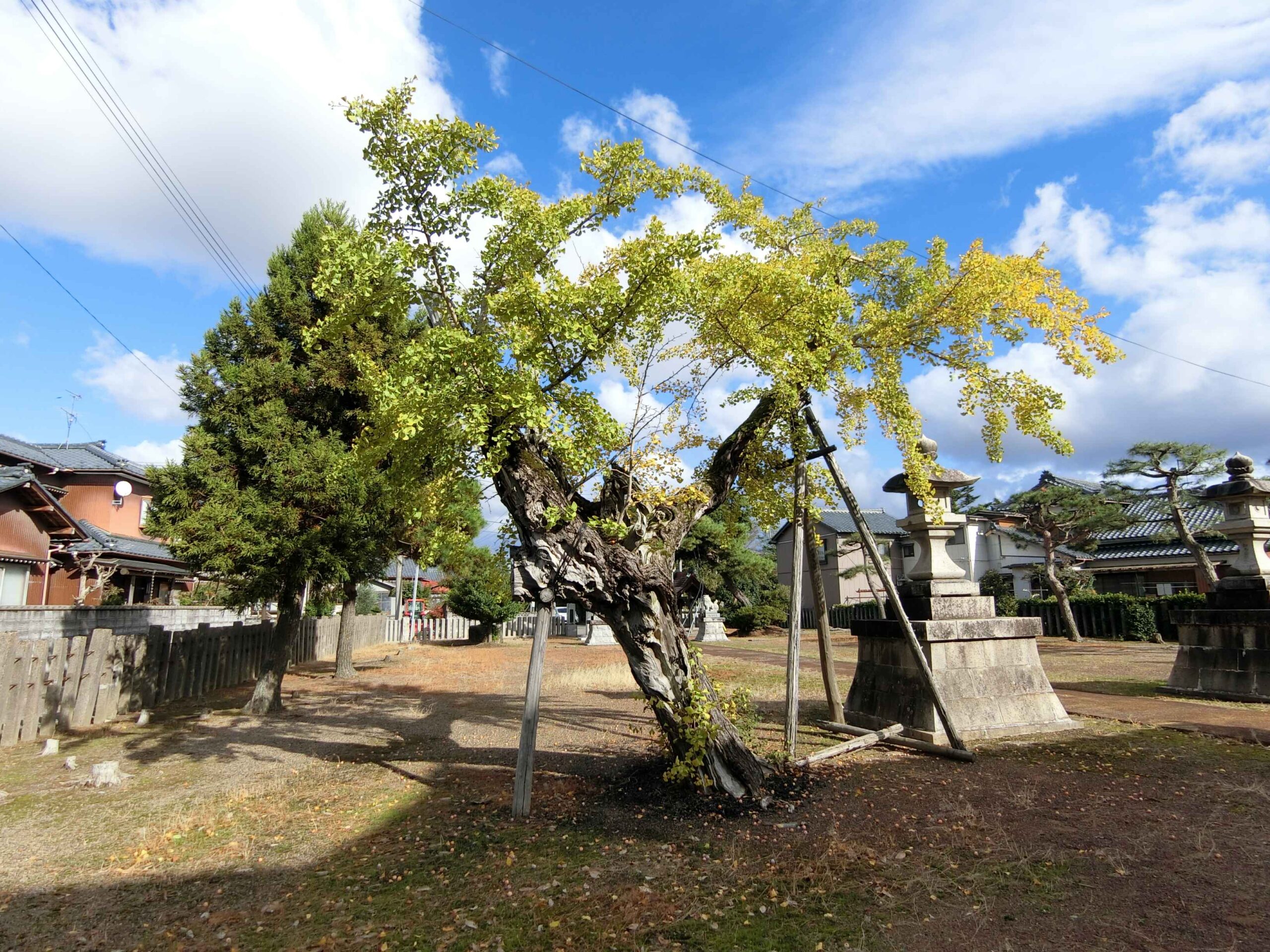 神社の境内の銀杏も少しずつ色づき始め、地面には秋の恵みであるギンナンが落ちていました。いよいよ紅葉本番も近いです。