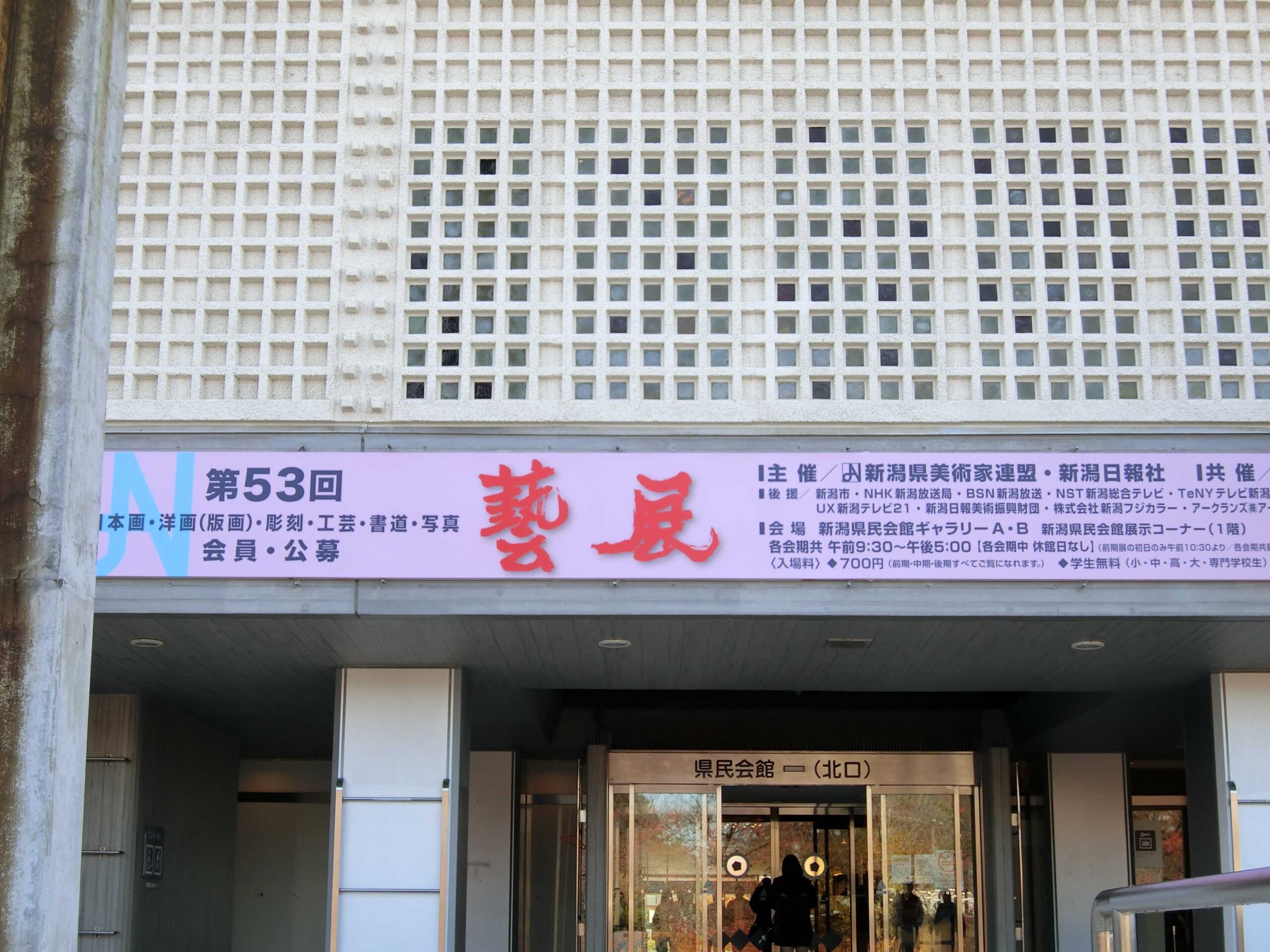 秋晴れの11月15日、新潟県民会館で開催された「藝展(げいてん)」(新潟県美術家連盟展)を鑑賞してきました。(共催:新潟県美術家連盟・新潟日報社)会場である県民会館の周囲は、紅葉がそろそろ終わりを告げる頃合いで、美しい秋の風景に包まれていました。