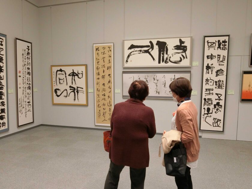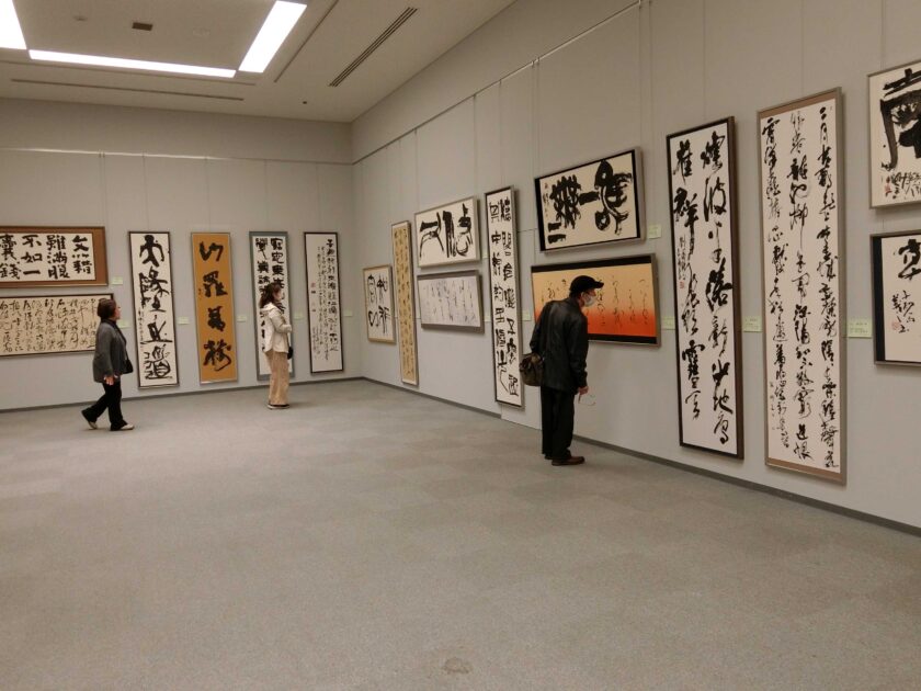 書道展示会場に一歩足を踏み入れると、約360点もの迫力ある作品群に圧倒されます。私自身、30代から習い始め、還暦を迎えるまでの24年間書道に携わった時期がありました。しかし、生来の怠け癖もあり、自身の限界を知って筆を置いたという経緯があります。現在は、当時所属していた松雲書道会(https://sumiato.com/)のホームページ作成をお手伝いしているご縁があり、先生方から情報をいただく形で、今回の展覧会鑑賞となりました。せっかく来たのだからと、松雲書道会から出品されている皆さんの作品を一つも見逃すまいと、会場内を隅から隅まで熱心に巡りました。1時間半ほどの鑑賞でしたが、旧知の方々の素晴らしい作品も多数あり、改めてその熱意と技術に頭が下がる思いでした。出品作品の詳細については、ぜひ松雲書道会のホームページをご覧ください。