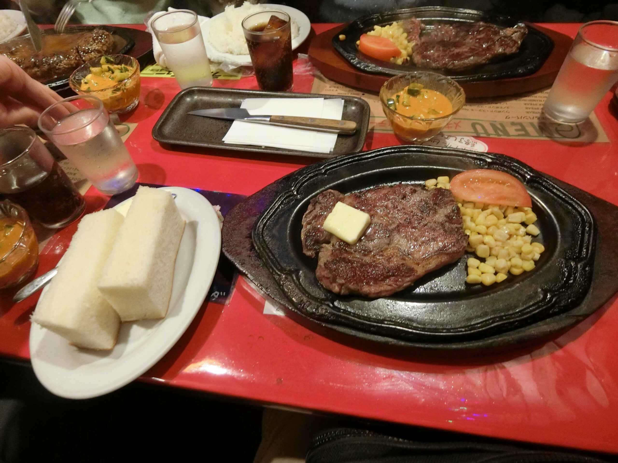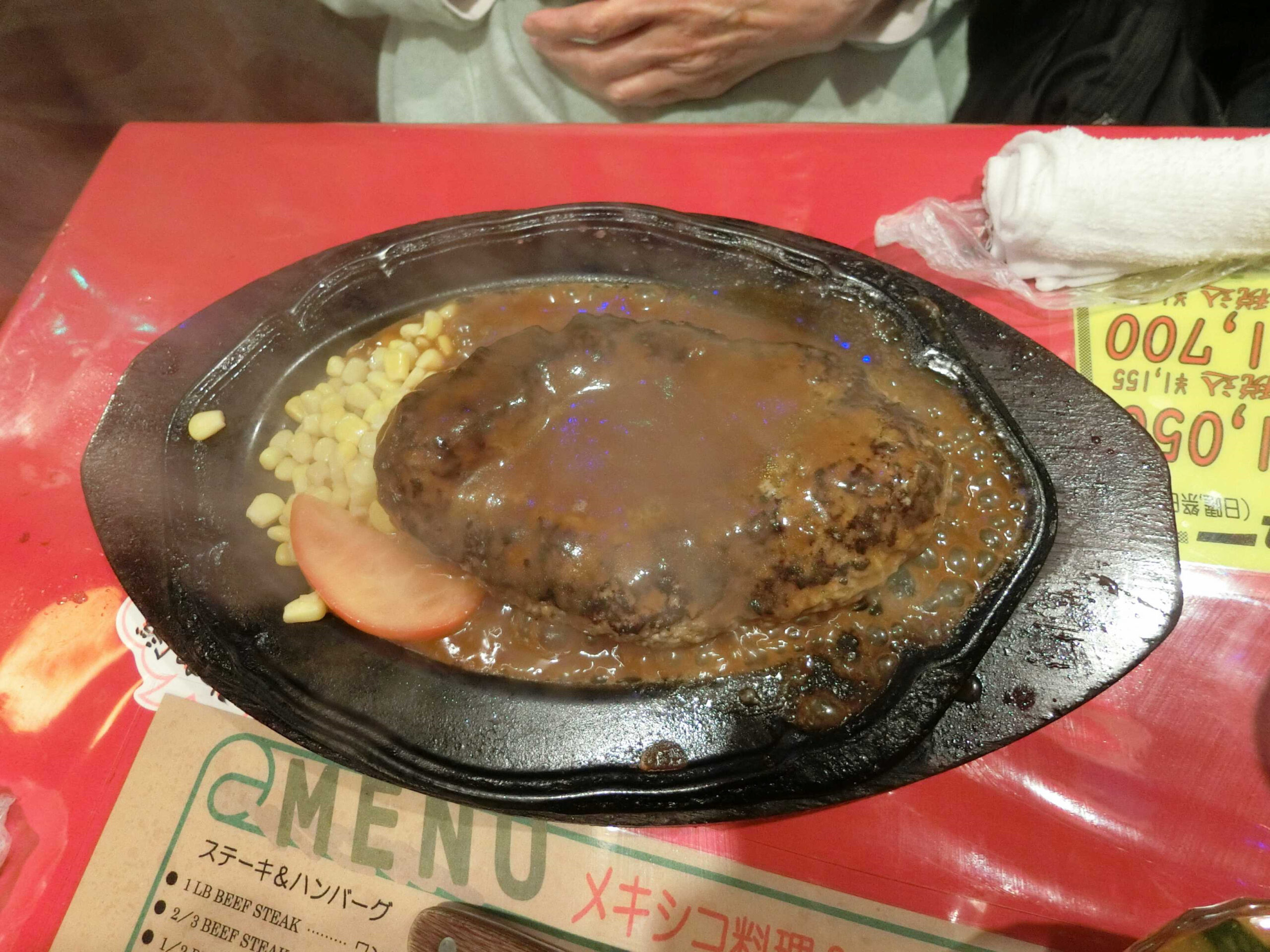 訪れたのは正月2日の12時30分頃。店内はほぼ満席でしたが、運よく4人掛けのテーブルに案内されました。まず驚いたのが、注文してから1分も経たないうちに料理が運ばれてきたことです。店長さんの「安く、早く、うまい」というモットーを反映しているのだとか。今回いただいたのは「ジャンボ・ハンバーグ(400g)」と「1/2ポンドステーキ」。40年前の味の記憶は正直おぼろげでしたが、50年近くも愛され続けていることに納得のいく、力強く美味しい味わいでした。また息子たちが帰省した際にはぜひ立ち寄りたい、おすすめの名店です。