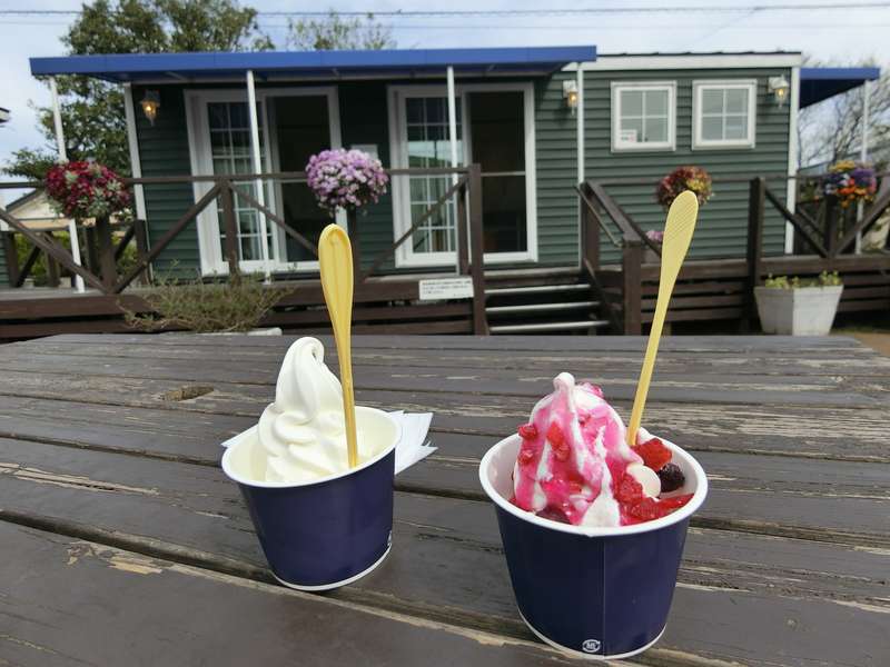 そこで車で10分ほどの「ヤスダヨーグルト」へ。以前の素朴な売店のイメージから一新、「ワイワイガーデン」としてオープンした現地は、家族連れにぴったりの開放的なスポットに生まれ変わっていました。3月14日にオープンしたばかりのチーズ専門店も賑わっており、新しい安田の魅力を感じました。ここで人気のヨーグルト入りカップソフトをいただき、大満足で帰路につきました。