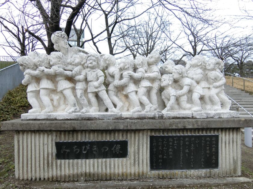 まだまだ寒さの残る日が続いています。左の写真は、新潟市中央区の県民会館にある新潟地震の伝承碑「みちびきの像」です。