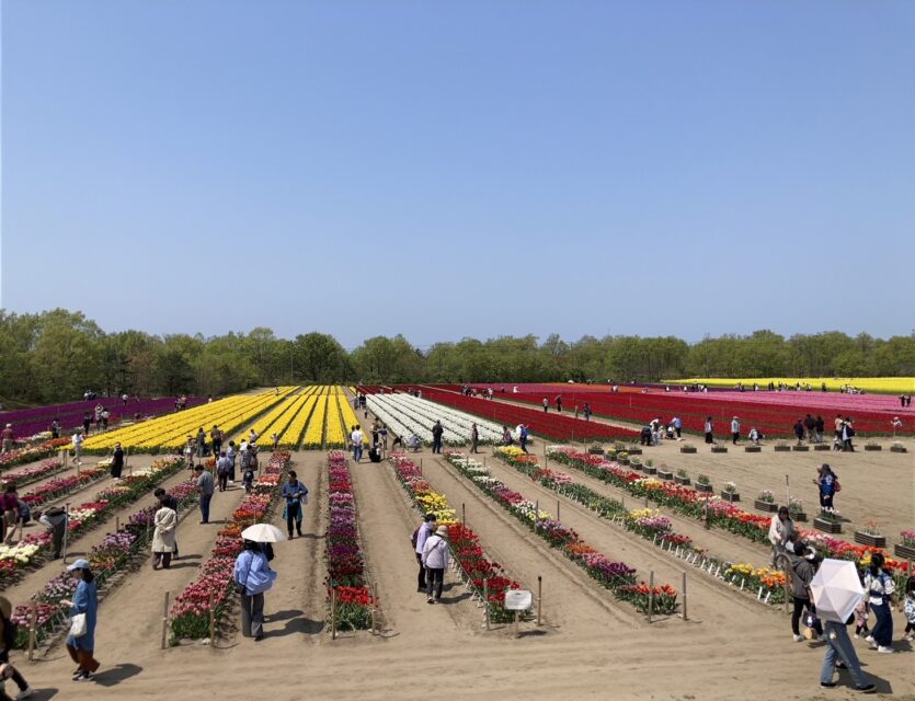 肌寒い日の、4月24日隣の五泉市のチューリップを見に行きましたが、すでに終わっていました。近くの牡丹園に行ったら、ピンクのシャクナゲが満開でした。