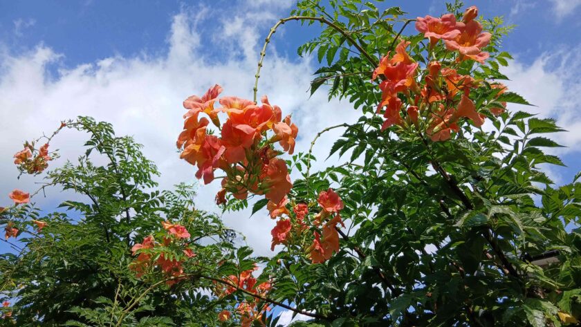 ノウゼンカズラは、つる性の落葉樹で、夏に橙色の美しい花を咲かせます。